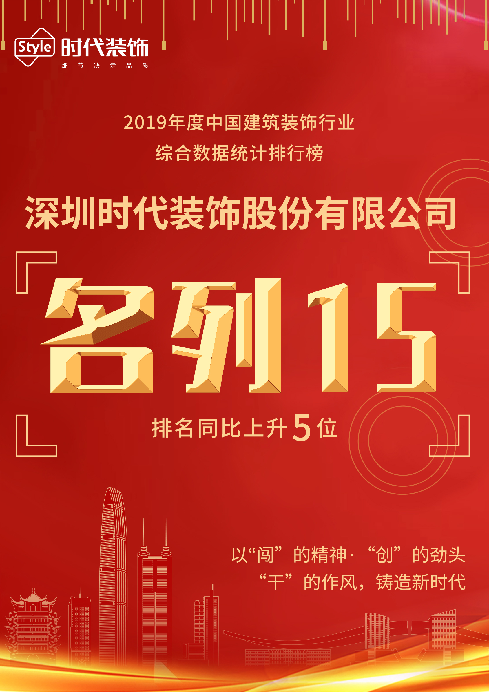 本次排名,是社會與行業對時代裝飾綜合實力的肯定,彰顯了時代裝飾強大的項目管理能力、不斷提升的企業核心競爭力及品牌影響力。