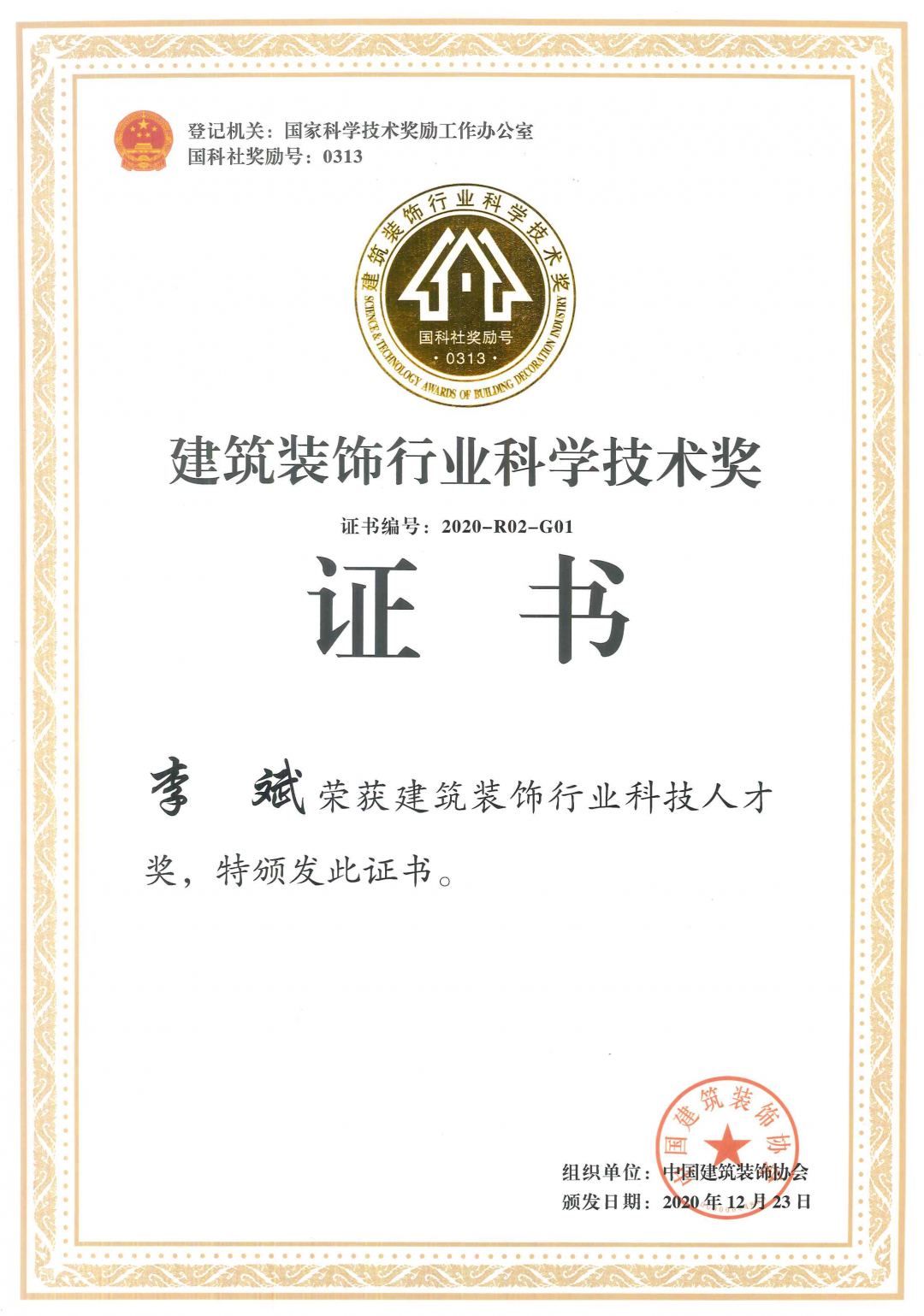 李斌,一級注冊建造師,高級工程師,現(xiàn)任公司高級副總裁,從事裝飾行業(yè)近30年,在技術創(chuàng)新、管理創(chuàng)新及人才培養(yǎng)模式創(chuàng)新等方面做出突出貢獻。
