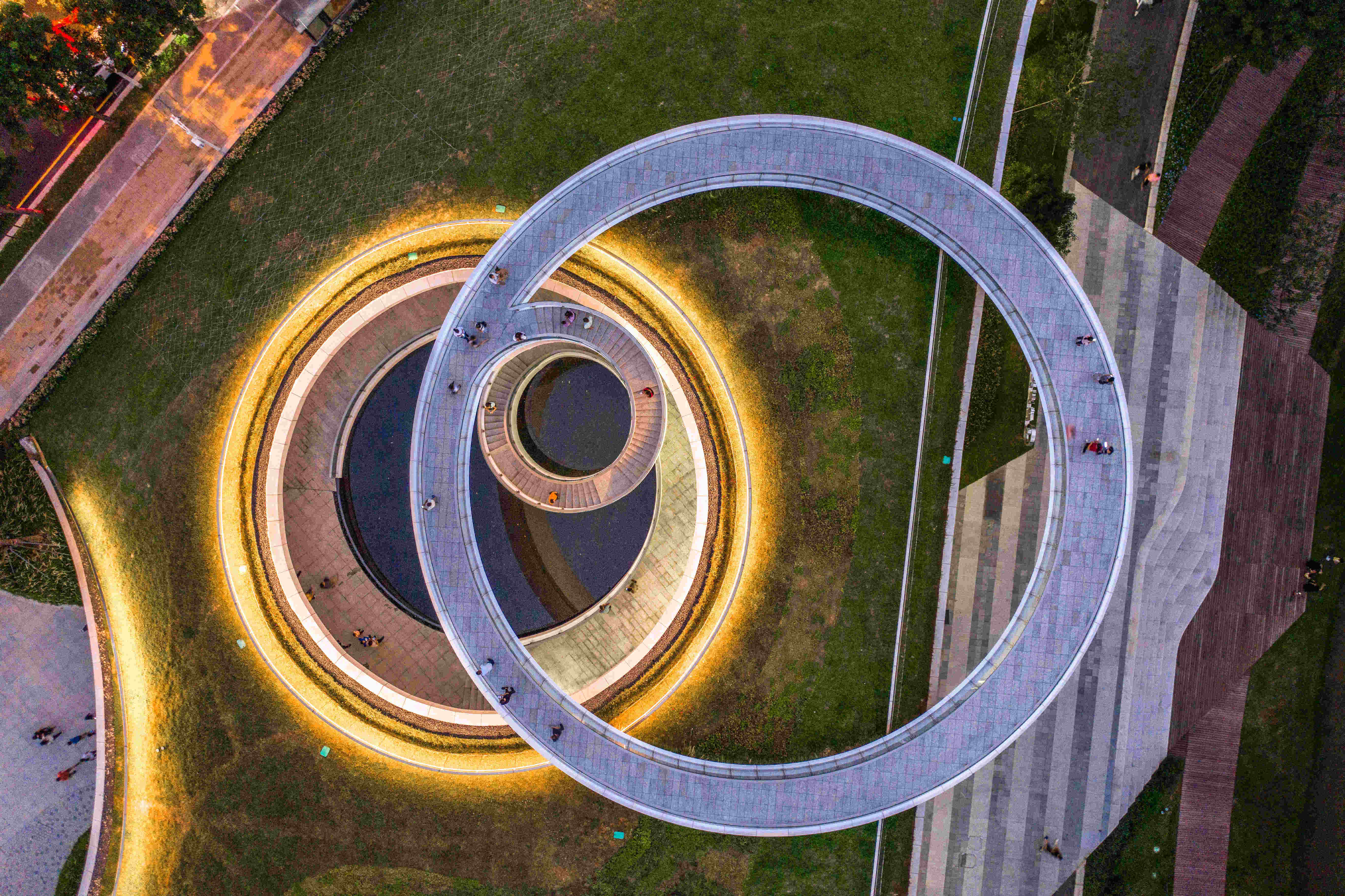 “碧道之環”是茅洲河碧道項目的最重要一環,其造型獨特,主要由鋼結構和混凝土構造而成,整體頂面有20000多個標高,施工任務挑戰巨大。
