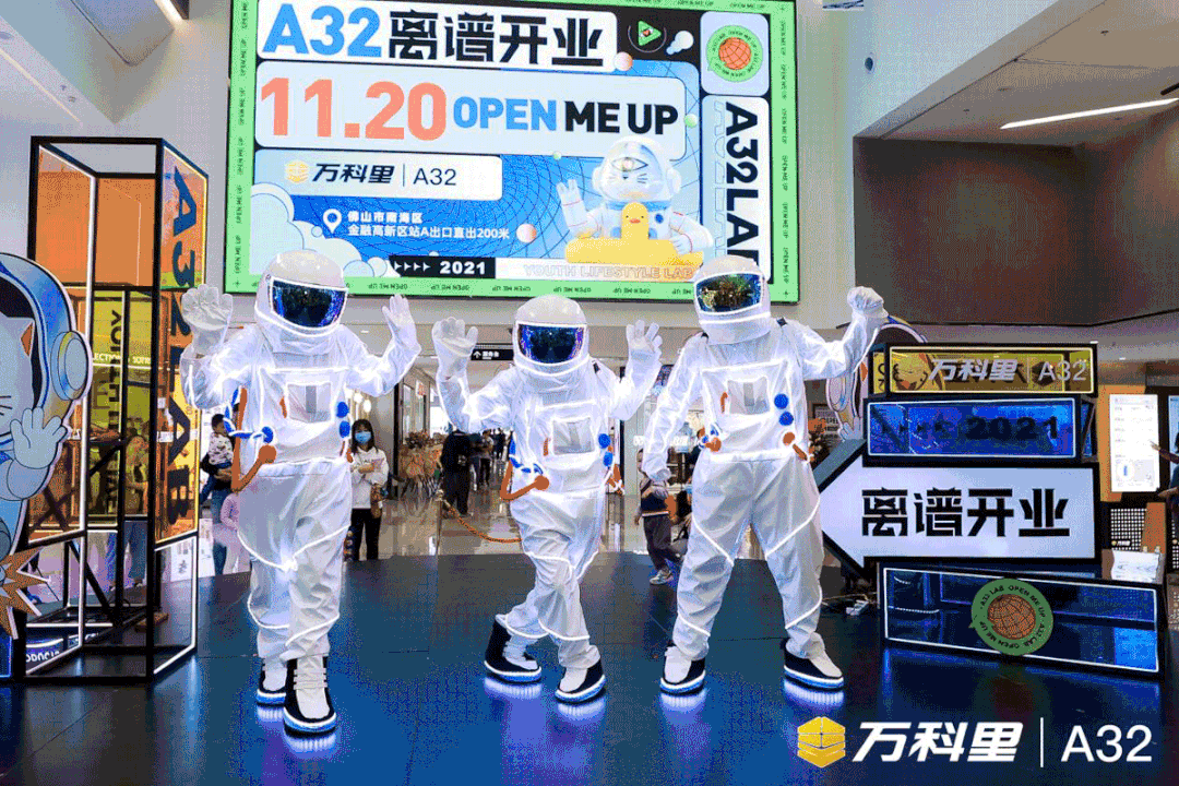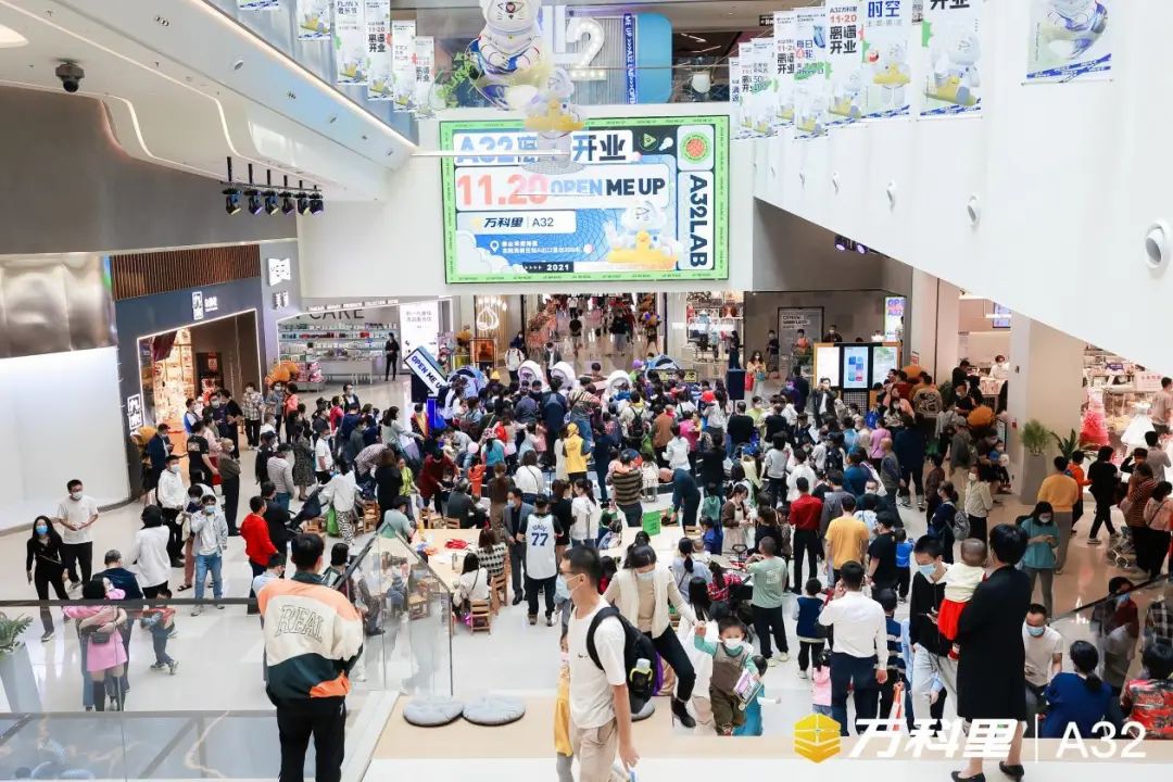 2021年11月20日,由時(shí)代裝飾承建的A32·萬科里(以下簡(jiǎn)稱“A32”),攜手近84家品牌,以100%招商率、95.8%開業(yè)率迎來正式開業(yè)。廣佛市民期待已久,開業(yè)當(dāng)天現(xiàn)場(chǎng)便造起朝圣打卡的涌動(dòng)浪潮,形成線下吸引8萬+客流,線上社交圈好評(píng)刷爆的“離譜”現(xiàn)象。