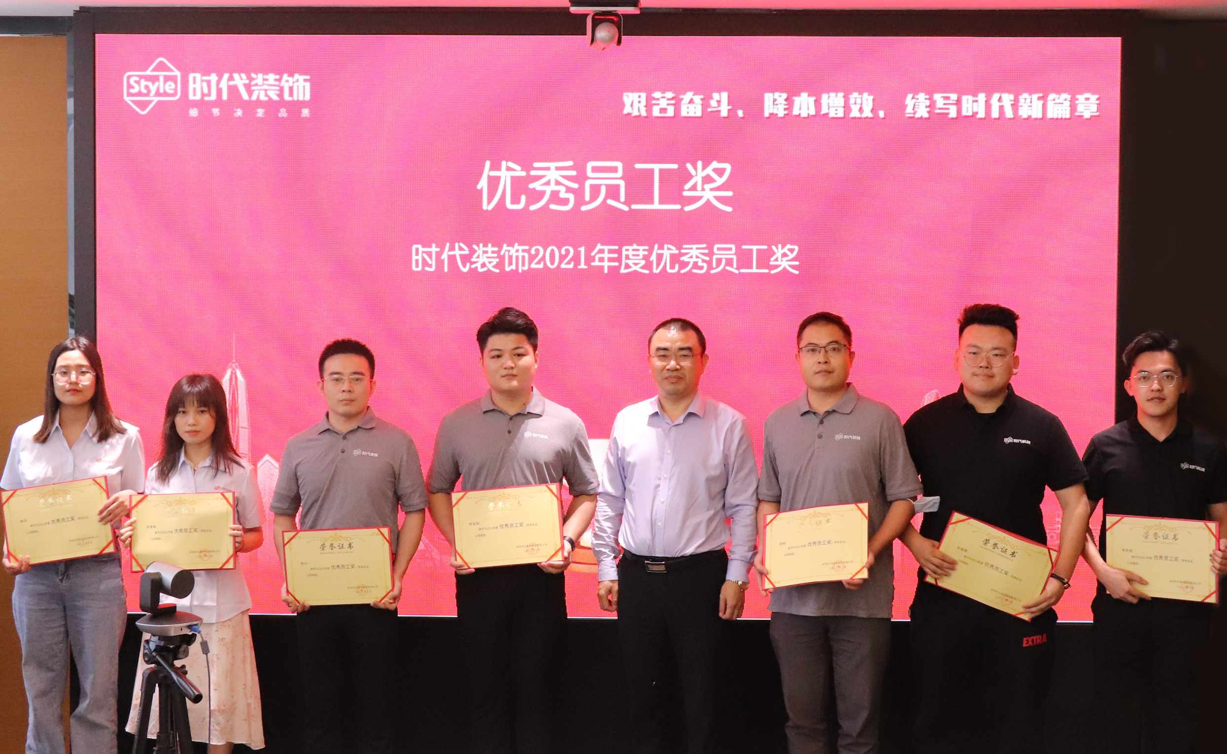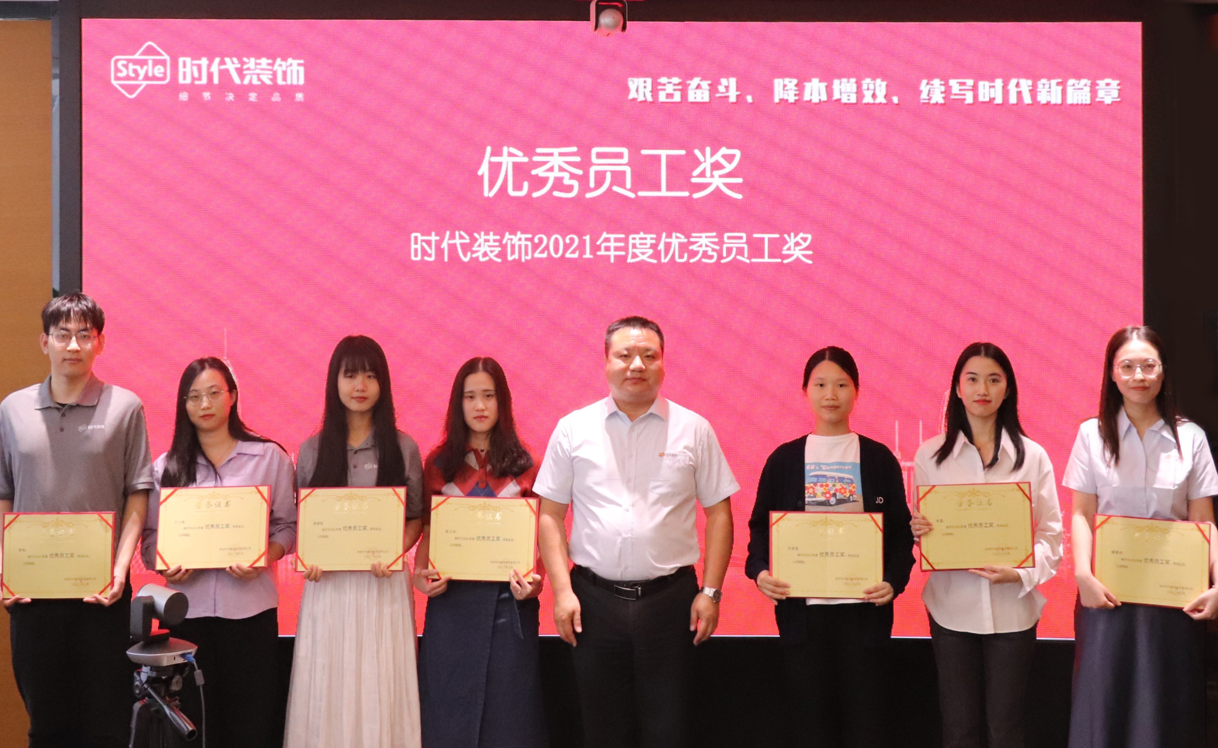 2022年4月10日,時代裝飾在總部一號會議室舉行了2021年度總結表彰大會,公司董事長曲毅、副董事長兼總裁李越、各職能中心、各事業部領導以及核心骨干出席了會議。本次大會全面總結了公司2021年的工作成果、表彰了年度先進個人與優秀集體,并對2022年工作進行部署。
