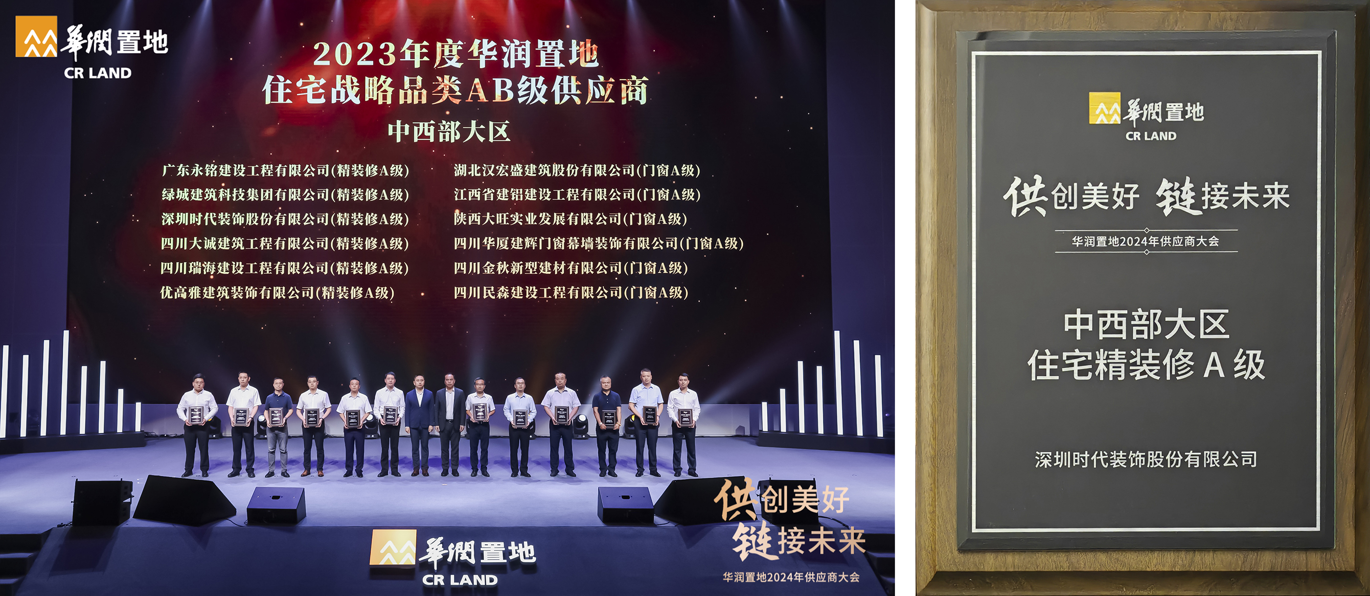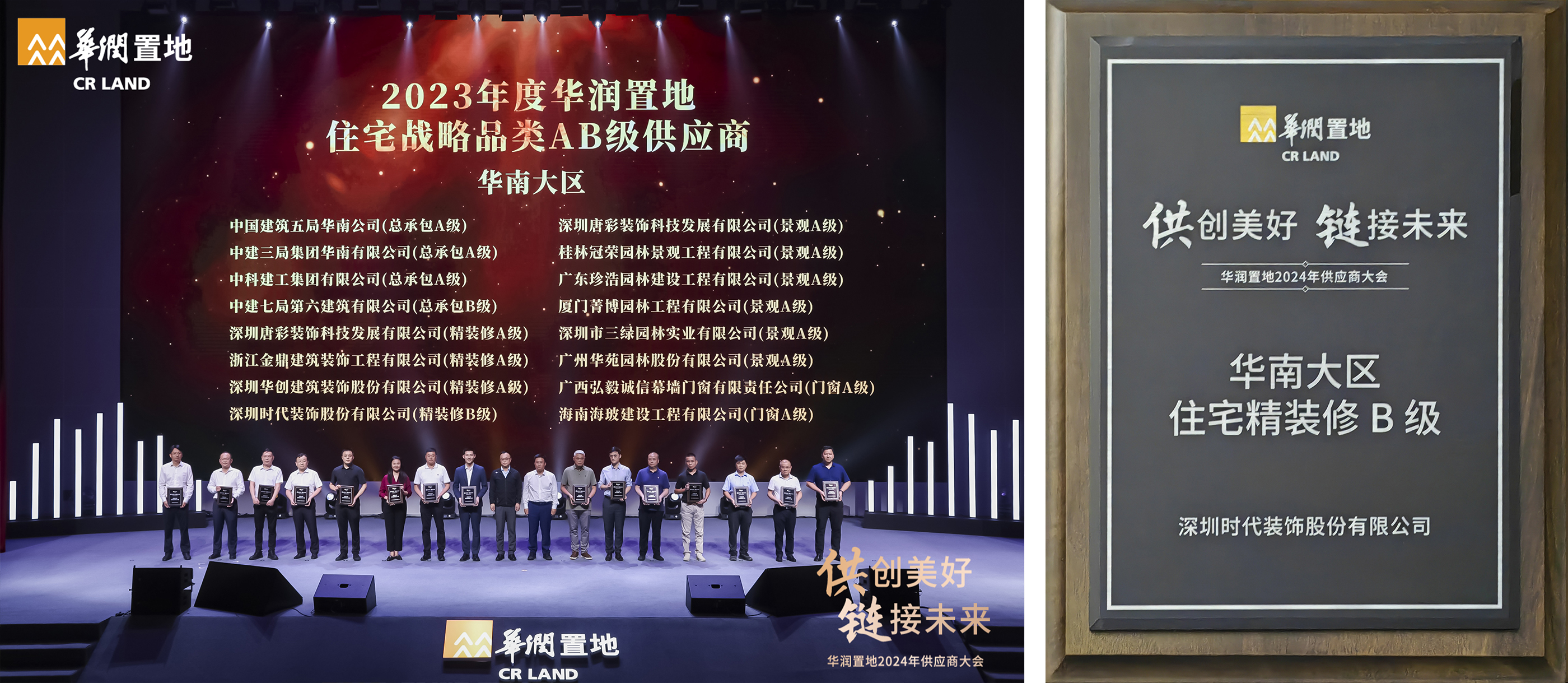 摘要:5月30日,時代裝飾出席華潤置地2024年供應商大會并獲多項榮譽。