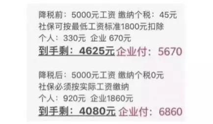 需要強調(diào)的是,對于一直按照實際工資繳納社保的人來說,在稅前工資沒變的情況下,降稅后,到手工資其實是增加的。